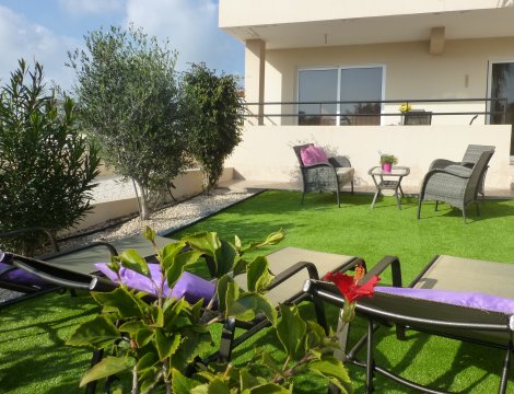 Sun Terrace with Sun-beds, Parasol, Patio Furniture to relax and enjoy the warm Cypriot sun